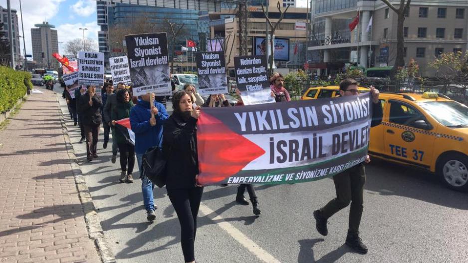 Friends of Palestine against Imperialism and Zionism marched to the consulate of Israel in Istanbul, Turkey on 30th of March, the day which Palestinians have been celebrating as Land Day since 1976. Land Day has been one of the symbols of the resistance against Zionist occupation. Friends of Palestine raised the banner of anti-Zionism and anti-imperialism on this historic day, by marching against the common enemies of the peoples of Middle East. Meeting at 15.30 in front of the Zionist consulate in Istanbul, Friends of Palestine read a public statement.