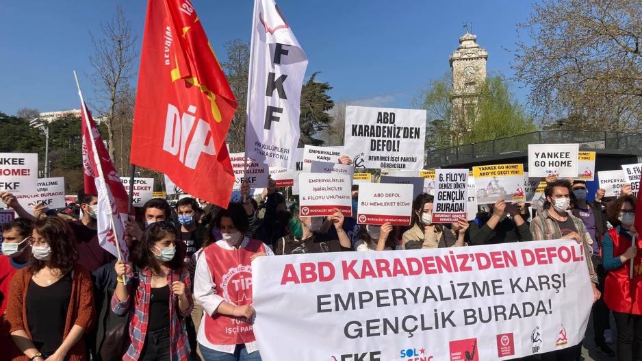 14-15 Nisan tarihlerinde ABD’nin Karadeniz’de emperyalist kuşatmayı arttırmak üzere boğazlardan geçirmeyi planladığı savaş gemilerini gençlik örgütleri Dolmabahçe’de protesto etti. Gençlik örgütlerinin, anti-emperyalist mücadeleyi bir kez daha yükselttiği eyleme Devrimci İşçi Partili Öğrenciler de “NATO’dan çıkılsın, üsler kapatılsın!”, “Kahrolsun Amerikan emperyalizmi!”, “ABD Karadeniz’den defol!” yazılı dövizlerle katıldı.