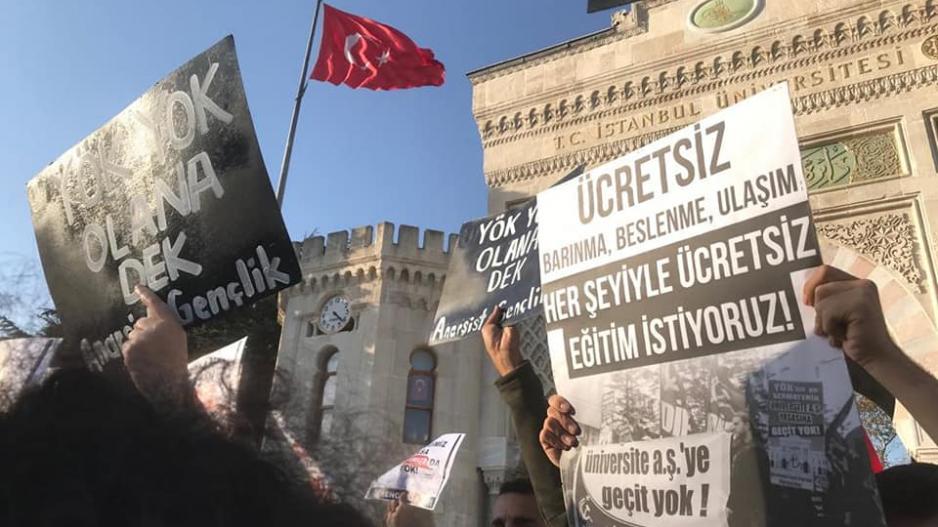 Üniversite öğrencileri, işçi sınıfının yükselen mücadelesine karşı yapılan 12 Eylül 1980 darbesinin bir ürünü olan YÖK’ün (Yüksek Öğretim Kurulu) kuruluşunun yıldönümünde İstanbul’da bir basın açıklaması yaptı. 6 Kasım Çarşamba günü saat 16.00’da İstanbul Beyazıt Meydanı’nda buluşan farklı üniversitelerden öğrenciler üniversiteleri sermayenin boyunduruğuna sokmak, üniversitelerde yükselen devrimci mücadeleleri bastırmak için kurulan YÖK’e karşı her yıl olduğu gibi bir araya geldi.
