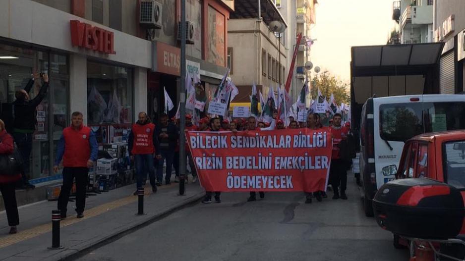Geçtiğimiz günlerde Birleşik Metal-İş, Petrol-İş ve Cam Keramik-İş sendikalarının birlikte düzenlediği basın toplantısı ile Bilecik Sendikalar Birliği’nin kuruluşu ilan edilmişti. Aynı basın toplantısında 8 Kasım saat 16:45'te düzenleyecekleri eyleme çağrı yapılmıştı.