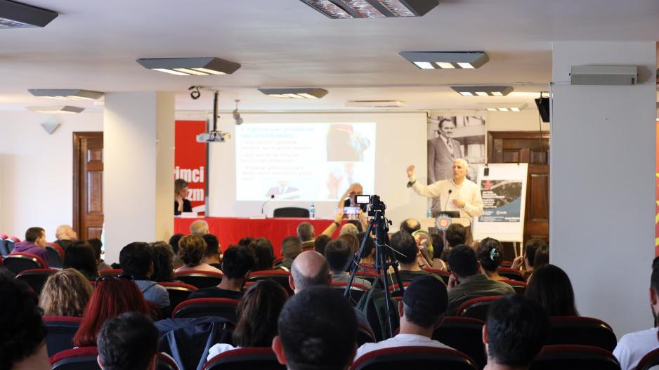 Devrimci Marksizm dergisi Cumhuriyet’in kuruluşunun 100. yıldönümü yaklaşırken “Cumhuriyet, İstibdad, Hürriyet” başlıklı konferansla Türkiye’nin yakın tarihini sınıf perspektifiyle ve Marksist yöntemle masaya yatırdı. Konferans, içeriğine de çok uygun bir şekilde Birleşik Metal-İş Sendikası Genel Merkez konferans salonunda gerçekleşti. Salonda çok sayıda fabrika ve işyeri temsilcisi, öncü metal işçileri başta olmak üzere farklı sektörlerden işçiler ve emekçiler bulunuyordu. Toplantıya Birleşik Metal-İş Genel Sekreteri Özkan Atar ve Tek Gıda-İş Örgütlenme Uzmanı Yunus Durdu da katıldı.