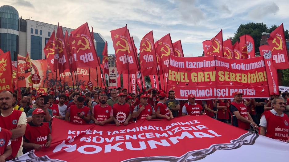 Devrimci İşçi Sendikaları Konfederasyonu (DİSK), 15-16 Haziran büyük işçi ayaklanmasının 49. yıldönümünde, 15 Haziran günü İstanbul Kartal’da düzenlediği mitingle kıdem tazminatına ve emeklilik hakkına sahip çıkacağını, krizin faturasını işçilere ödetme çabalarına karşı mücadele edeceğini haykırdı.