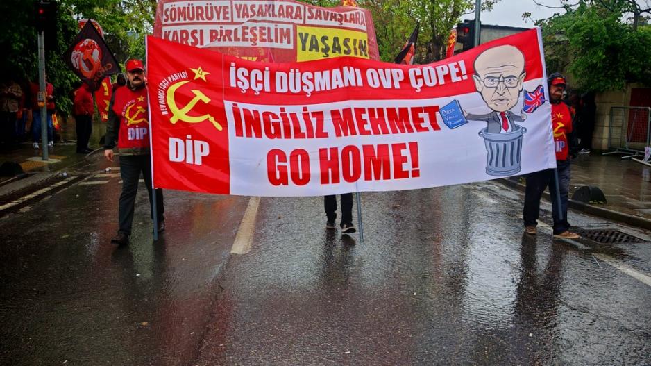 Devrimci İşçi Partisi 1 Mayıs’ı işçi sınıfının içinde örgütledi ve alana sınıfın yakıcı taleplerini taşıdı: İşçi düşmanı OVP çöpe! İngiliz Mehmet Go Home!