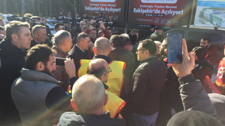 Eskişehir TÜVTÜRK Reysaş Araç Muayene İstasyonu’nda, sendikalaştıkları için işten atılan işçilerle dayanışma adına Eğitim-Sen, 4 Şubat Pazartesi saat 11.00’de yapılmak üzere basın açıklaması çağrısında bulunmuştu. Açıklama Reysaş patronunun sahibi olduğu Hilton Garden Otel’in önünde gerçekleştirilecekti. Fakat yapılacak basın açıklamasına saatler öncesinden TOMA’sıyla, gözaltı araçlarıyla, çevik kuvvetiyle gelen emniyet güçleri; otel patronunun valiliğe verdiği dilekçeyi dayanak göstererek Hilton Otel’in bulunduğu sokakta basın açıklamasına izin vermeyeceklerini belirttiler. Eskişehir Eğitim-Sen Şube Başkanı Faik Altan, Nakliyat-İş Sendikası Genel Başkanı Ali Rıza Küçükosmanoğlu ve işçilerin, basın açıklamalarını belirttikleri yerde yapacaklarını söylemeleri üzerine kolluk kuvvetleri ve işçiler arasında tartışma çıktı.