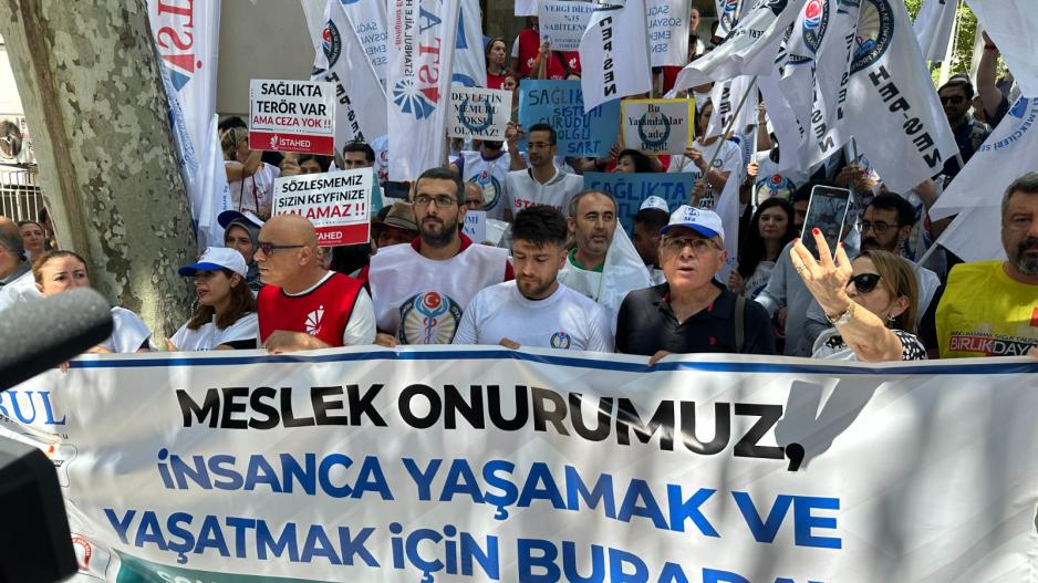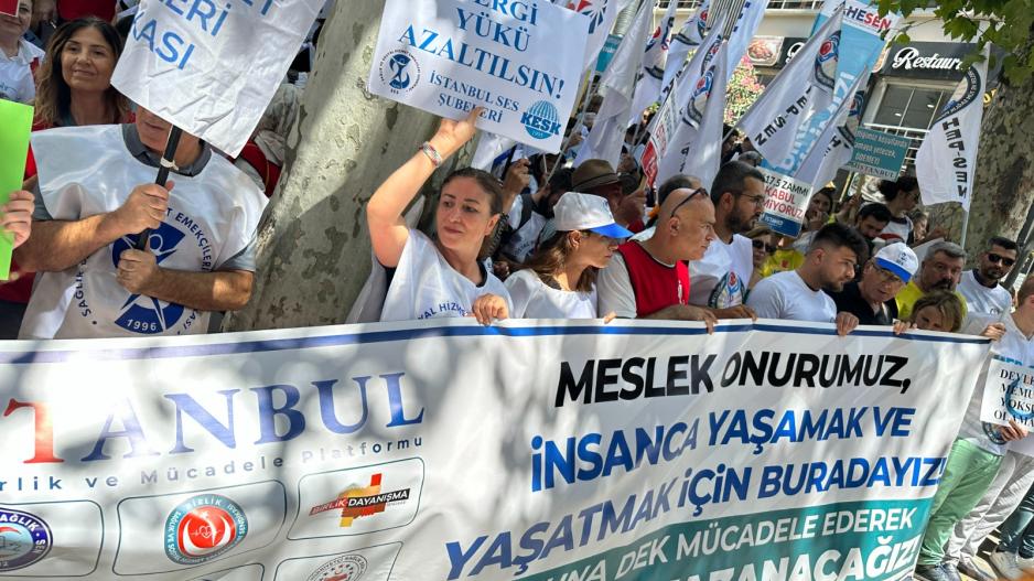 Sağlık emekçileri toplu sözleşme görüşmelerinde haklarını alabilmek için iş bıraktı