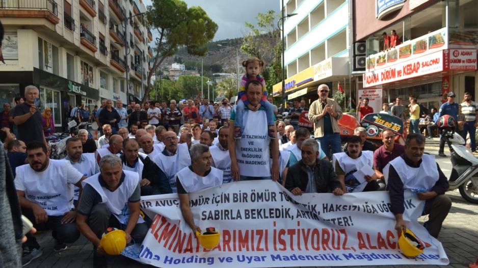 TKİ'ye (Türkiye Kömür İşletmeleri) ait Soma Holding’e bağlı Soma Kömürleri A.Ş. tarafından Hizmet Alım Sözleşmesi kapsamında işletilen Eynez, Ata Bacası, Işıklar ve Uyar Madencilik'te çalışırken, 13 Mayıs 2014'te meydana gelen ve 301 madencinin hayatını kaybettiği Soma katliamından sonra işten çıkarılan 2831 madenci, 5 senedir kıdem ve ihbar tazminatlarını alamıyor. Bu sayı, 2017 yılında Uyar Madencilik A.Ş.'den çıkarılan işçilerle birlikte toplamda 3500'e ulaştı.