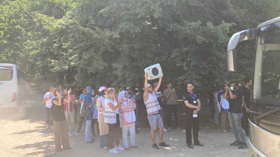 Gidilecek yeri işçilere bile söylemeyerek, etkinlik alanını gizli tutmaya çalışan patron, içerideki sendikalı işçileri hesaba katmadı. Direnişteki Adkoturk işçileri, yine Tek Gıda-İş sendikasında örgütlenen ve 57 gündür grevde olan Bel Karper işçileriyle beraber etkinlik alanına gitti ve sloganlarla işçilere “Sendikan Tek Gıda-İş burada” dedi. İşçilere seslenen Tek Gıda-İş örgütlenme uzmanı Yunus Durdu, patronun sendikayı engellemek için bu etkinliği düzenlediğini, hediyeleri bunun için dağıttığını, bir kereye özel olduğunu, sendika gittiği zaman etkinliklerin biteceğini, tekrardan eski düzene dönüleceğini işçilere hatırlattı.