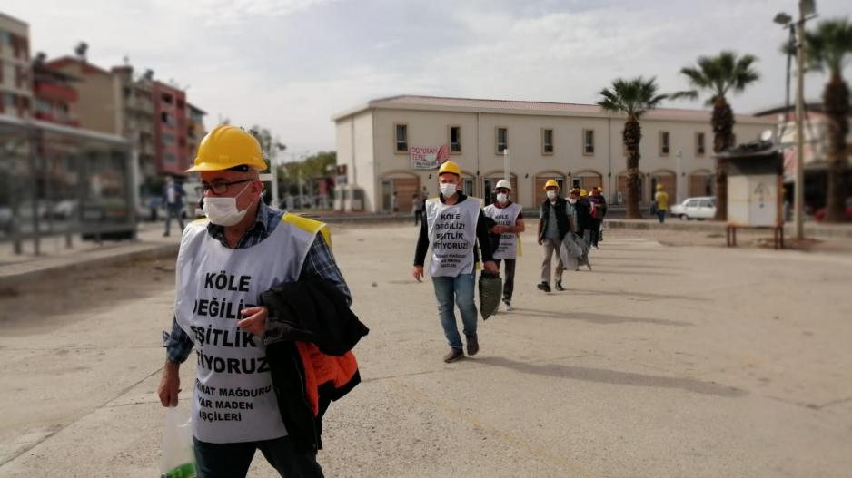 Kapsam dışında bırakılarak tazminatlarını alamayan Uyar Madencilik işçileri “Atabacası, Işıklar, Geventepe rödovans da bizimkisi kölevans mı?” diyerek 12 Ekim’de Soma’dan Ankara’ya doğru yola çıktı. Aynı gün, 1 seneyi aşkın süredir maaşlarını ve tazminatlarını alamayan Ermenek Cenne ve Seba Madencilik işçileri de Bağımsız Maden-İş sendikası öncülüğünde Ermenek’ten Ankara’ya yürüyüşe geçti. Ermenekli madencilerin yolu jandarma tarafından kesilerek yürüyüşleri engellendi.