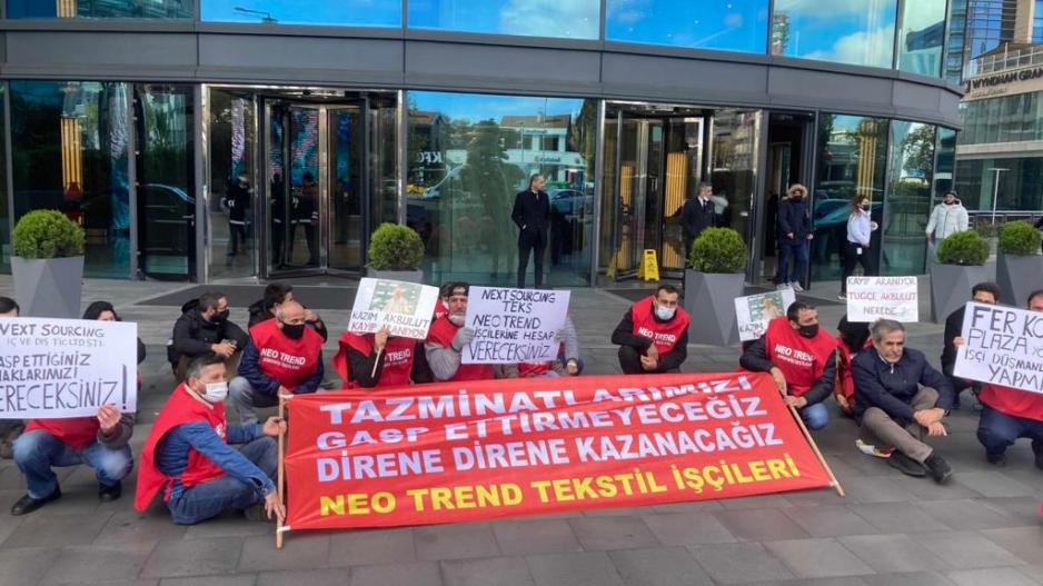 Neo Trend tekstil patronu, pandemi döneminde kısa çalışma ve ücretsiz izin fırsatçılığını sonuna kadar kullandı, 1 Temmuz’la birlikte ise 104 işçiyi tazminat haklarını ödemeden işten çıkardı. Artık devletin icra iflas kanunundaki boşlukları fırsat olarak değerlendirme zamanı gelmişti ve şirketin içini boşaltan Kazım Akbulut adeta kayıplara karıştı. Neo Trend işçileri ise haklarını almak için mücadele ediyorlar. 11 Kasım günü Küçükçekmece Adliyesi’nde toplanan işçiler hem bir basın açıklaması yaptılar hem de adliyede şirket aleyhinde dava açtılar. Daha sonra Neo Trend’in fason iş yaptığı üst işverenlerden Next Sourcing’in Levent’teki binasına geçen işçiler burada Next Sourcing yetkilileriyle görüşmeleri engellenince plazanın önünde oturma eylemi yaptılar. Devrimci İşçi Partisi olarak hem Küçükçekmece Adliyesi’nde hem de Levent’te işçilerin yanındaydık.