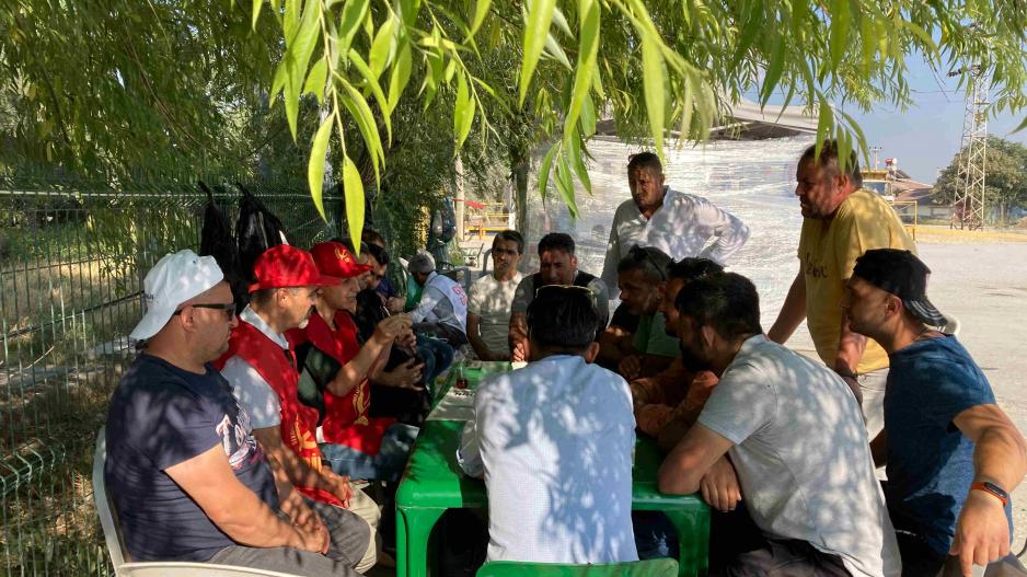 Gerçek gazetesinin son sayısının da ulaştırıldığı ziyarette işyerindeki çalışma koşulları ve sendikal örgütlenme süreci üzerine konuşuldu. İşçi sağlığı açısından yoğun risk barındıran bir iş yapmalarına rağmen işçiyi koruyacak donanımların yetersizliği, kalitesiz ve sağlıksız yemekler ve çalışmak zorunda kaldıkları ağır çalışma koşullarını paylaştılar. “İnsan geleceğini güvence altına almak, çalıştığında biraz da bir kenara koymak ister, ama biz çalıştıkça borçlanıyoruz” diyen işçiler tüm memleketin durumunu özetliyor.
