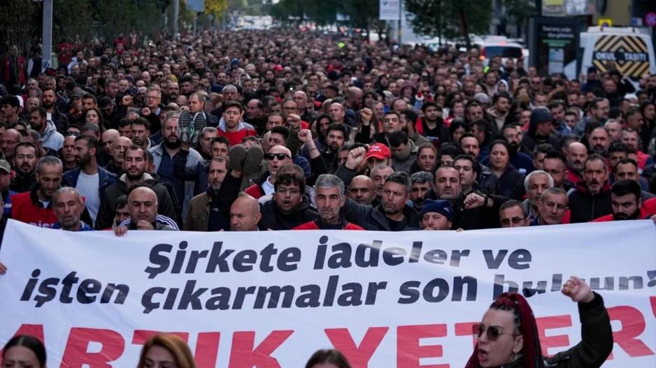 İzmir Büyükşehir Belediyesine bağlı İZENERJİ, İZELMAN, İZFAŞ, EGEŞEHİR ve İZTEK şirketlerinde çalışan binlerce işçi, kazanılmış haklarına yönelik saldırılar nedeniyle bir haftadır eylem yapıyor.
