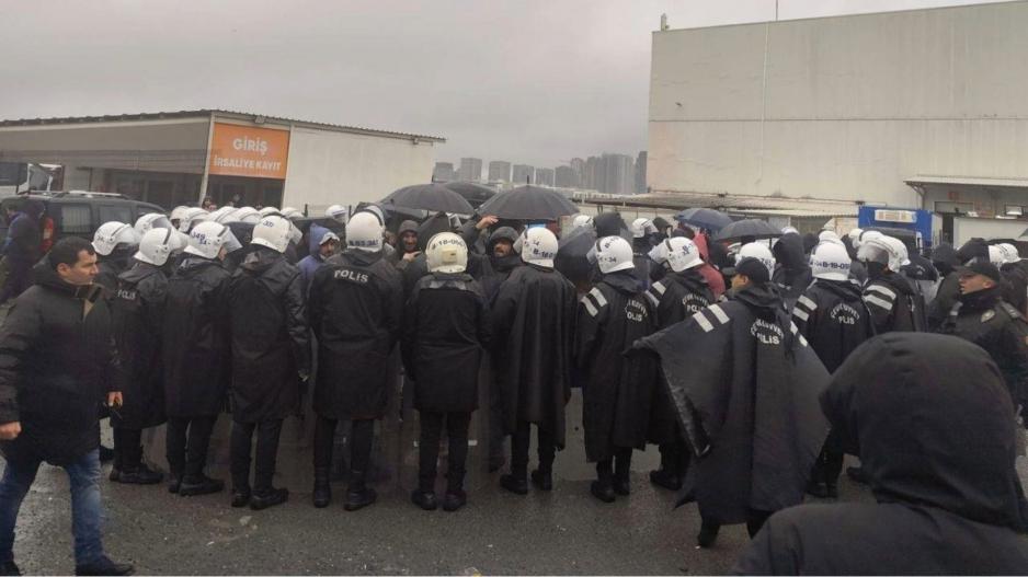 Bu sefer devreye, Tuncay Özilhan’ın yardımına koşan istibdadın polisi girdi. 100 Migros işçisi gözaltına alındı, hem de ters kelepçeyle! Eş zamanlı olarak Migros’un İzmir Torbalı’daki deposunda da 7 işçi gözaltına alındı. Smart Solar’da grev kıran patrona kalkan olan polis, bu kez de depo işçisinin fiili grevini kırmak için kolları sıvadı. Beykoz’da patronun evinin önündeki polis saldırısından sonra, Migros’un Esenyurt deposu önündeki direniş alanını da polis abluka altına aldı. Bugün Migros depo işçileri kahramanca mücadele ediyorlar. Patronun hilelerine, devletin baskılarına boyun eğmeden mücadeleyi büyütüyorlar.
