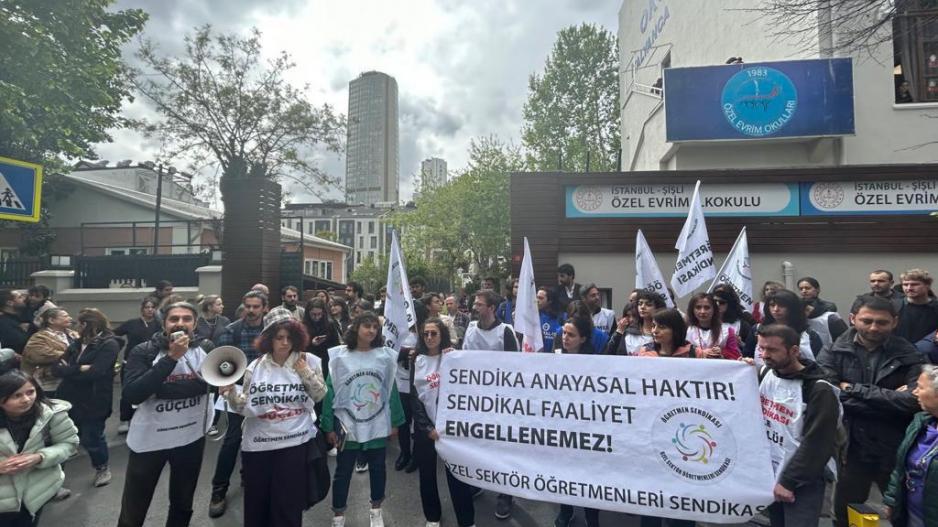 Özel Evrim Okulları’nda çalışan Özel Sektör Öğretmenleri Sendikası genel başkanının ve bir MYK üyesinin “motivasyon ve güven eksikliği” bahanesiyle sözleşmeleri yenilenmeyerek işten çıkarılması üzerine sendika 10 Mayıs’ta okul önünde bir eylem düzenledi. Eyleme işten çıkarılan öğretmenlerin meslektaşları ve öğrencileri de katılarak destek verdi.