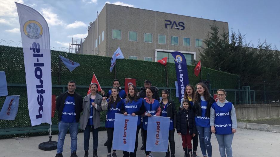 Çerkezköy’de bulunan, Arçelik, BSH, Varicon gibi fabrikaların yan ürünlerini üreten PAS South fabrikasında çalışan işçiler düşük ücretlere ve kötü çalışma şartlarına bir son vermek için Petrol-İş sendikasında örgütlendi. Hızlı bir örgütlenme sürecinin ardından çoğunluğu sağladıktan sonra yetki başvurusu yapacakları gün patron sendikalaşmadan haberdar olup yetkiyi engellemek için 20 işçiyi işe aldı. İşçilerin patronun bu sendika düşmanı hamlesine cevabı hemen sendikaya başka işçileri de üye yapmak oldu. Yeni üyelerle birlikte tekrar çoğunluğa ulaştı ve yetki başvurusunda bulundu. Sabah 20 işçiyi işe alan PAS South patronu yetki başvurusunun ardından ise daralma bahanesiyle aynı gün içinde öncü işçileri işten çıkardı. Daralma ve 25/2 bahanesi ile işten çıkarılmış 21 PAS South işçisi, Petrol-İş sendikasının öncülüğünde fabrika önünde kararlılıkla örgütlenme ve çalışma hakkına sahip çıkıyor, direniyor. Çerkezköy’de Petrol-İş’in örgütlü olduğu Jotun Boya, Elbabant, Eaton gibi fabrikaların temsilcileri PAS South işçilerinin direnişini, kendi mücadeleleri gibi sahiplenerek işçileri direniş alanında bir an olsun yalnız bırakmıyor.