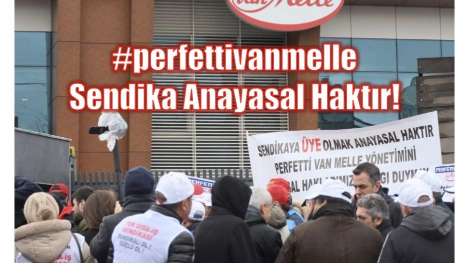 Dünyanın birçok yerinde üretim tesisi olan ve bulunduğu yerlerde işçilerin sendikalı toplu sözleşmeye tabi olduğu, aynı zamanda Avrupa’da “en iyi işveren” ödülü alan Perfetti Van Melle yönetimi, memleketimizdeki işçilerin anayasal hakkını çiğneyerek toplu sözleşme masasını reddetti ve sendikalaşan işçilere hukuksuz baskılar yapmaya başladı. Fabrikadaki işçileri gerekçesiz izinlere çıkarmalar ile başlayan ve fabrikada işçilerin e-Devlet hesaplarına bakma girişimleri ile devam eden bu baskılar, son olarak patronun 13 yıldır fabrikada çalışan sendika temsilcisi Ayhan Yaylalı’yı haksız şekilde işten çıkarmasıyla devam etti. Patronun sendika düşmanlığını kırmak için, işten çıkarılan sendika temsilcisi ve Tekgıda-İş sendikası, Perfetti fabrikası önünde direnişe ve eylemlere başladı.
