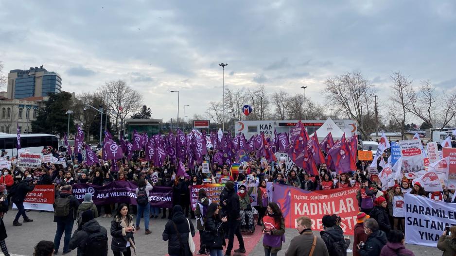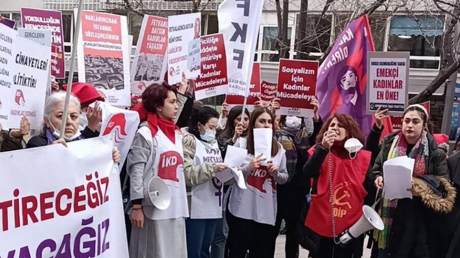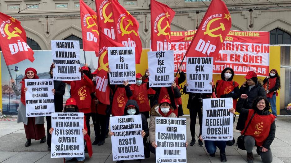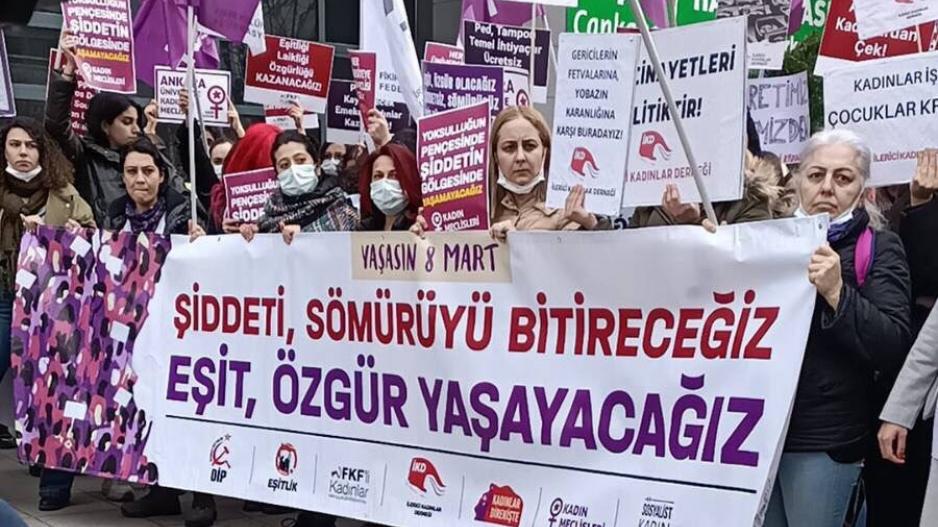 İstanbul ve Ankara’da 8 Mart Dünya Emekçi Kadınlar Günü vesilesiyle DİP, Eşitlik, FKF’li Kadınlar, İKD, İKDD, Kadınlar Direnişte, Kırmızı Gazete, Kadın Meclisleri ve Sosyalist Kadın Hareketi “Şiddeti, sömürüyü bitireceğiz! Eşit, özgür yaşayacağız!” şiarıyla ortak bir miting örgütledi. 6 Mart Pazar günü İstanbul’da Kadıköy, Ankara’da ise Sakarya Meydanı’nda gerçekleştirilen eylemlerde katılım da coşku da yüksekti.