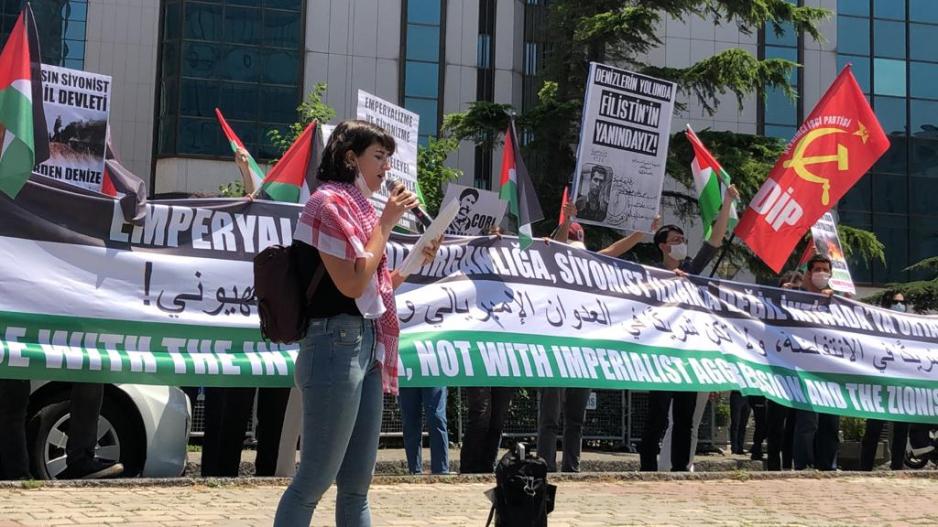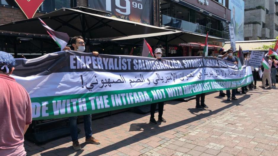Emperyalizme ve Siyonizme karşı Filistin Dostları platformu İsrail’in ABD’nin desteği ile Batı Şeria’da Siyonist yerleşimlerden başlayarak bölgenin yüzde 30’una ulaşan bir alanı ilhak etme planını İstanbul Levent’te bulunan sözde İsrail konsolosluğu önünde protesto etti. Tüm dünyada ilan edilen öfke günü kapsamında yapılan eylemde Filistin dostları Türkçe Arapça ve İngilizce “Emperyalist saldırganlığa ve Siyonist ilhaka değil İntifada’ya ortak ol!” yazan uzun bir pankartla birlikte Levent metro çıkışından konsolosluk binasına kadar sloganlarla yürüdüler. Emperyalizme ve Siyonizme karşı mücadeleye her zaman önem ve öncelik veren Devrimci İşçi Partisi de eylemde bayrağı ve dövizleriyle yer aldı.