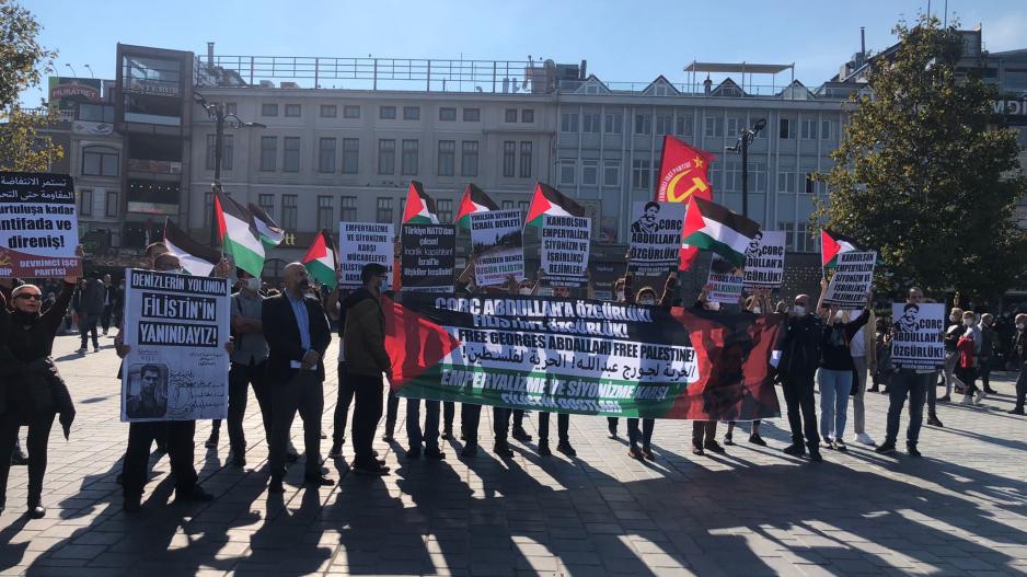 Emperyalizme ve Siyonizme Karşı Filistin Dostları, Corc Abdullah’a Özgürlük Birleşik Kampanyası’nın çağrısıyla 23 Ekim Cumartesi günü  İstanbul Eminönü’nde bir basın açıklaması düzenledi.
