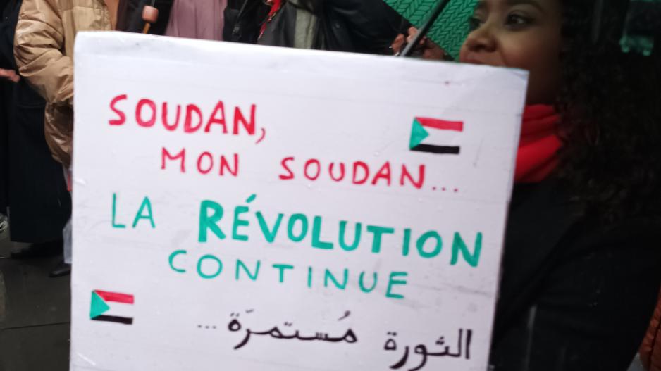 30 Ekim günü, Sudan’da “milyonların yürüyüşü” ile eş zamanlı olarak, Paris’in République Meydanı’nda, karşı devrimi yenmek için düzenlenen bir eylem gerçekleşti. Çok kısa sürede örgütlenmesine ve gün içinde bastıran yoğun yağmura rağmen eylem çok başarılı geçti. Fransız solunun hemen hemen hiç katılmadığı, ezici çoğunluğunu Sudanlı göçmenlerin oluşturduğu beş yüz kişilik kitle, 4 saat boyunca Paris’in en önemli meydanını Sudan devrimine destek sloganlarıyla inletti. Eylem boyunca neredeyse kesintisiz biçimde Arapça “yeskut, yeskut hükm-ül askerî” (yıkılsın, yıkılsın askeri rejim) sloganları atıldı; “savra, savra” (devrim, devrim) sloganlarıyla eşlik edilen marşlar söylendi.