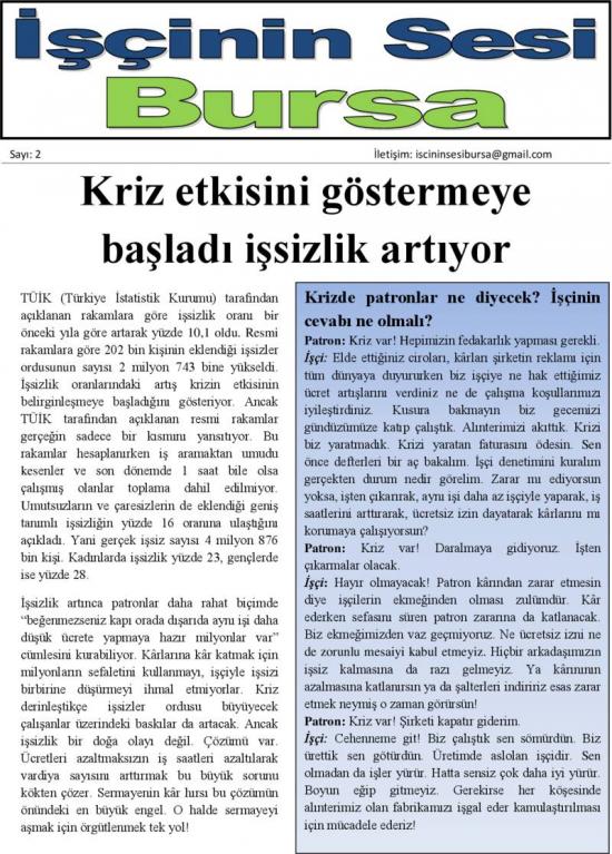 İşçinin Sesi Bursa Sayı 2 İNDİR